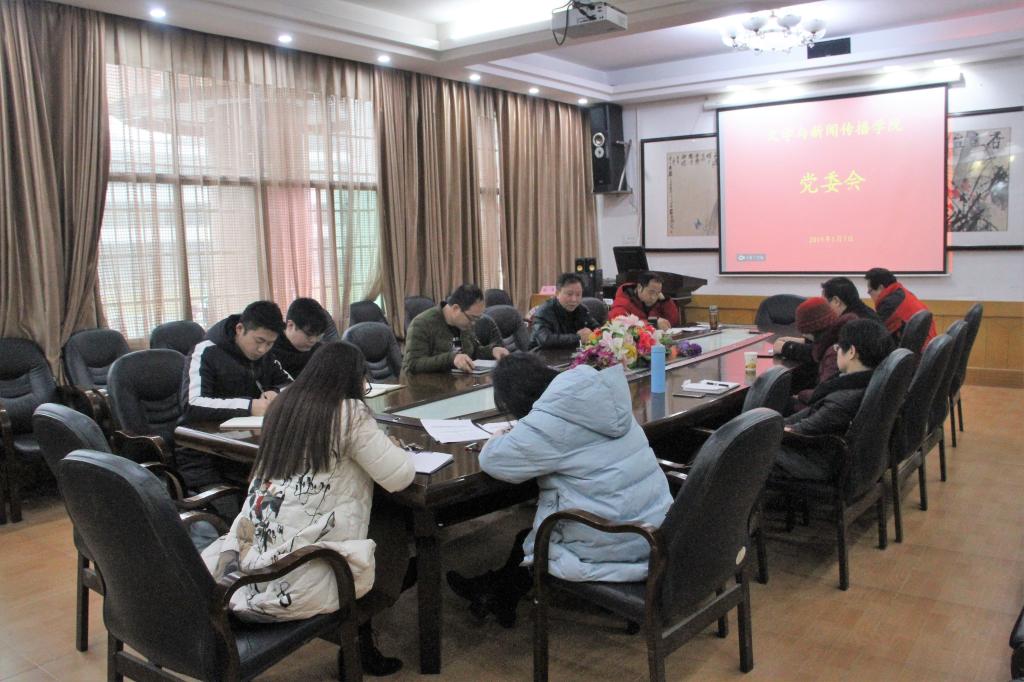 本网讯(学生记者 段诗韬 通讯员 饶金玉 熊嫦琳1月7午,我院在砂子坳校区影视鉴赏室召开党委会。党委书记陆升合、院长罗惠缙、副院长王焕林、党委副书记向军副院长彭广林部分党员老师会议陆升主持学习
