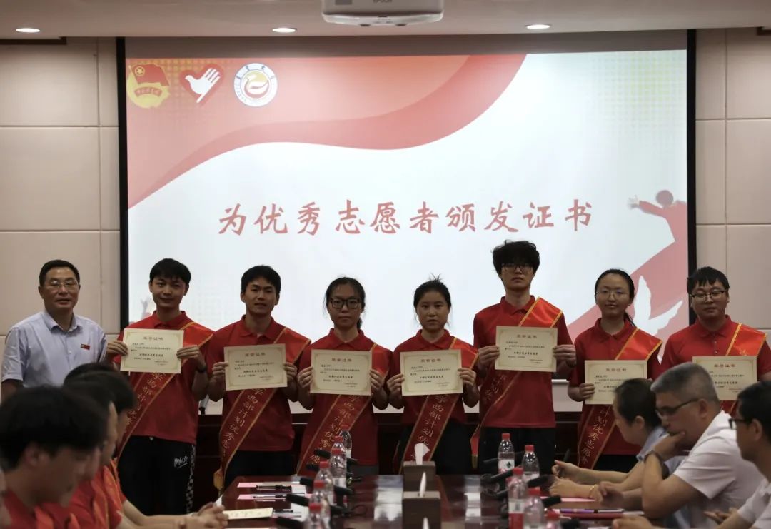 校党委委员、副校长罗惠缙,招生就业处处长向军,校党委学生工作部、武装部部长廖浩,校团委副书记丁晓岚,已派岗优秀志愿者代表20人以及志愿者代表所在学院党委书记或副书记、团委书记。