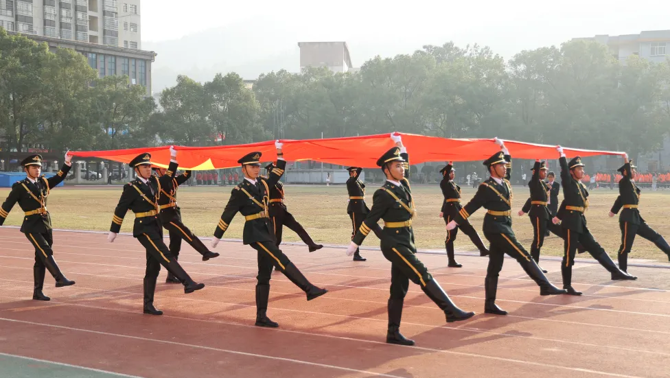 庄严肃穆地护送国旗入场