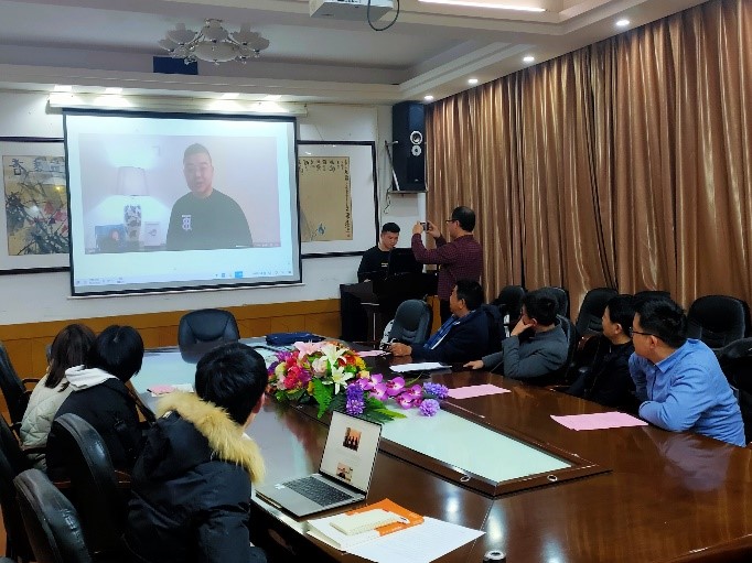 图为 颁奖现场播放校友视频(通讯员 邱馨瑶摄)