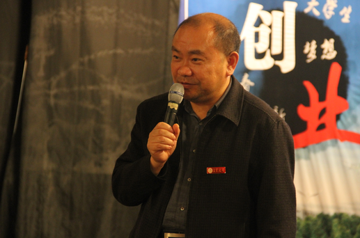 仪式开始,第四任总经理曹紫阳首先对从审核教学评估期间中抽出时间参与会议的老师及学生表示感谢,也表示很珍惜大学最后的正装时刻。他从公司简介、工作概况、经验教训四方面作年度工作总结,结合了公司过去一年的收获与成长、自己在公司的工作情况及公司在校内外洽谈稿子等经历,提出了公司存在洽谈业务前的准备不充分,个人定位不够明确等问题。最后,他用“泰山不让土壤,故能成其大;河海不择细流,故能就其深。长风破浪会有时,直挂云帆济沧海。”希望文学院创业孵化基地工程能越来越好,精灵成员能够茁壮成长,努力奋斗。