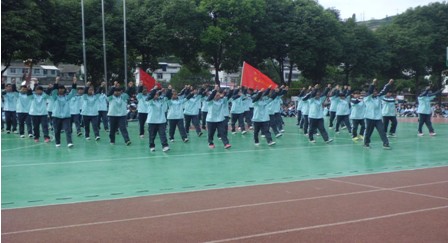 本网讯(赵海容 米笑荣)2013年10月15日上午,古丈一中第三届体育节暨运动会在第三套中学生广播体操“舞动青春”的旋律中拉开了序幕。本次体育节15日开始预计到18日落幕,为期三天。15日上午举行高一、高二年级第三套广播体操比赛,下午进入田径项目预赛、乒乓球预赛、羽毛球预赛等环节。