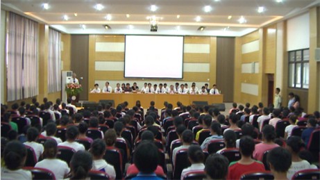 本网讯(记者 魏枫林 蔡 兴 摄影报道)2013年9月10日,适逢教师节,雨过天晴,丹桂飘香。下午三时许,我院在大田湾校区预科楼多功能报告厅,举行2013级新生开学典礼。院党总支书记田茂军、院长罗惠缙、副院长王焕林等院领导,唐生周教授、胡炳章教授等教师代表,各专业主任,2013级班级导师及学生辅导员出席本次典礼,典礼由院党总支书记田茂军主持。