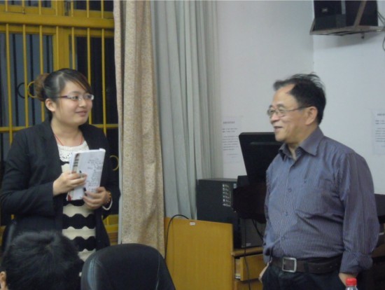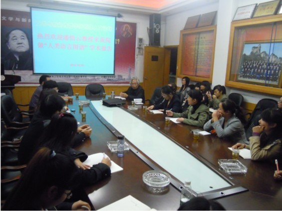 首先,唐生周教授代表文学院全体师生对潘悟云教授的到来表示欢迎,唐生周教授说到,潘教授是勤者、智者、勇者、强者,教育在座的各位研究生要向这位潘教授学习其严谨的学术精神、勤奋的学习态度。