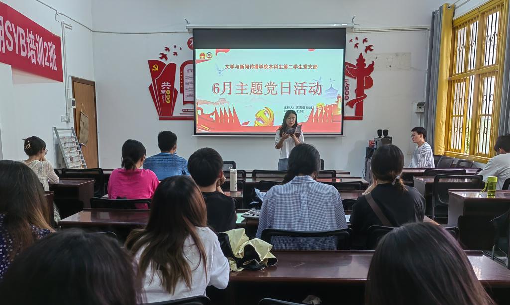 本网讯(通讯员 周依林)6月16日下午,我院本科生第二学生党支部于党员活动室开展主题党日活动,支部全体党员参会,会议由第二学生党支部书记刘建新主持。