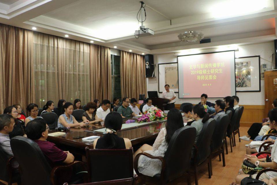 本网讯(通讯员何小芳)9月10日晚,我院于砂子坳校区影视鉴赏室举行2019级研究生导师见面会。我院党委书记杨龙斌、院长罗惠缙、副院长王焕林、彭广林、研究生导师及2019级研究生新生出席本次见面会。会议由彭广林主持。