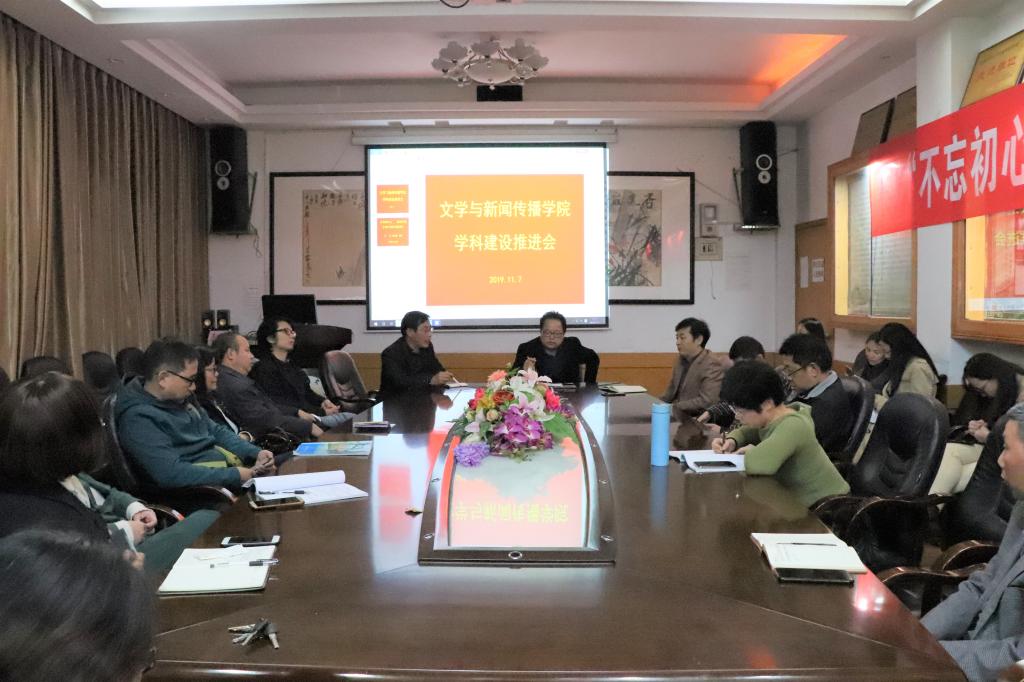 本网讯(学生记者 饶金玉 通讯员 邱馨瑶)11月7日晚,我院在砂子坳校区影视鉴赏室召开学科建设推进会。我院党委书记杨龙斌,院长罗惠缙,副院长王焕林及相关老师出席会议。会议由罗惠缙主持,王焕林主讲。