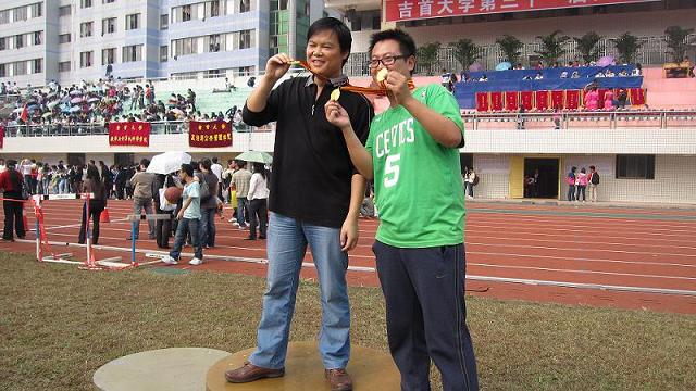 本网讯(通讯员 高荣博)10月29日下午,在砂子坳校区田径场上,我院教职工校运会喜创佳绩。副院长罗惠缙教授在教职工男三组,800米决赛中以3:06.03的绝对优势获得第一;团总支书记王江生老师在教职工男一组,400米决赛中以1:20.1的成绩取得第三名;黄红娇副教授在教职工女三组,800米决赛中,以3:55.03的成绩取得第三名;2009级辅导员王伟老师在教职工男一组,800米决赛中以3:37.03的成绩取得第二名;2007级辅导员李兰老师分别在教职工女组400米和100米决赛中,以1:22.0和16''2的成绩取得第一、二名。旗开得胜凤和鸣,以后我院定会取得更好的成绩!