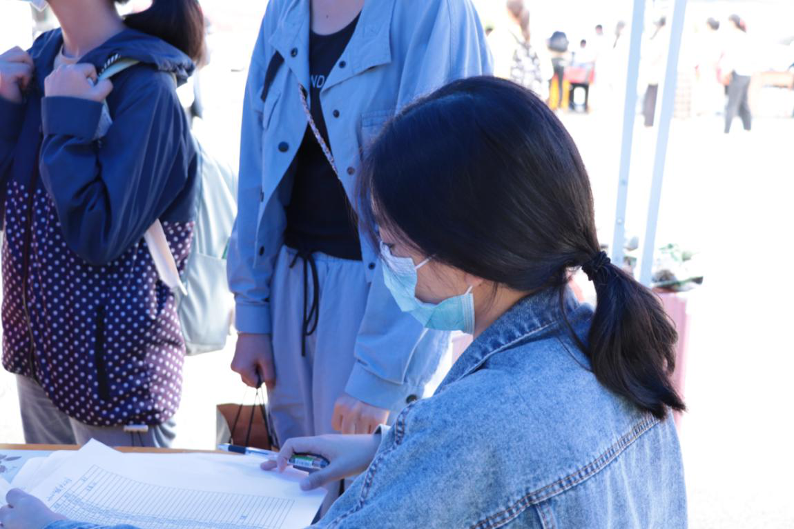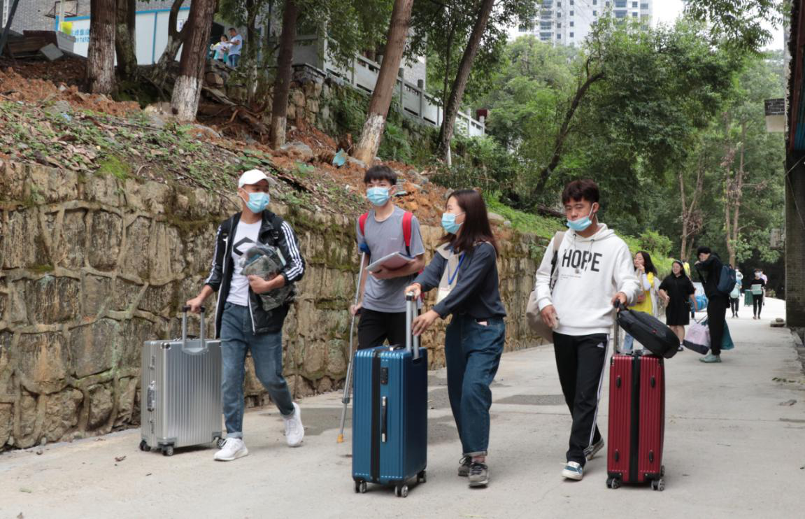 今年的迎新和去年有所不同,因为疫情,今年的新生报到和往年有了实质上的区别。所有的新生家长不得进入学校,行李都需要新生自己安顿好。远处刚驶来一辆校车,迎新的志愿者就马上拿起牌子跑去停车处大声喊道:“文院的学弟学妹往这边!”接待新生走流程,搬运行李、发放水卡、门钥匙、核对信息、交代生活注意事项这些都是迎新志愿者的基本工作。