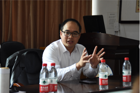 图为马正平教授与同学进行交流