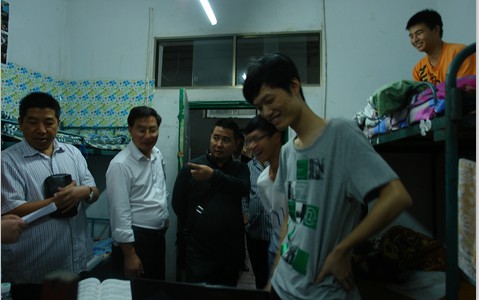 图为 我院领导老师下寝室慰问新生