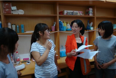 图为班级导师邹晓玲与新生亲切交流