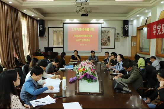 本网讯(通讯员 向阳 刘巧华 李慧凝)为了推进师范专业认证工作,形成能推广于学校的标准自评报告范本,5月18日,我院于影视鉴赏室召开师范专业认证工作推进会。院党委书记杨龙斌、副书记段武城,院长助理罗琼等汉语言文学相关教研室主任、专业老师等参加此次会议。