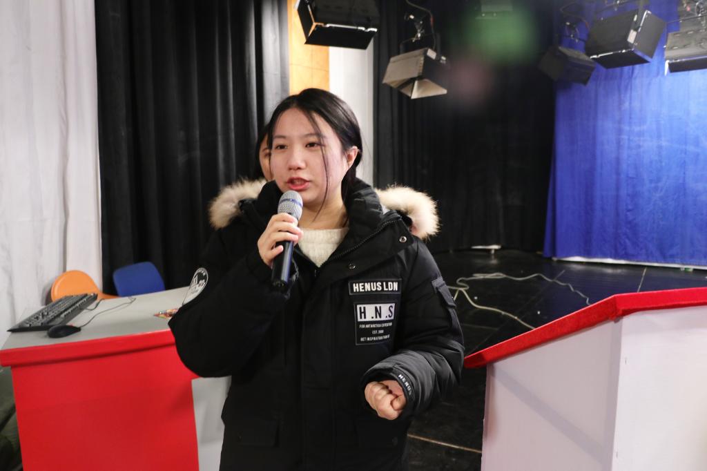 薪传教育第四届总经理陈思颖用“喜忧相交,知行合一”这八个字对本年度的工作进行了总结。她表示这一年薪传教育经历了很多困难,但是庆幸最后大家还是团结在一起。她希望下一届成员能够再接再厉,将公司发展得越来越好。
