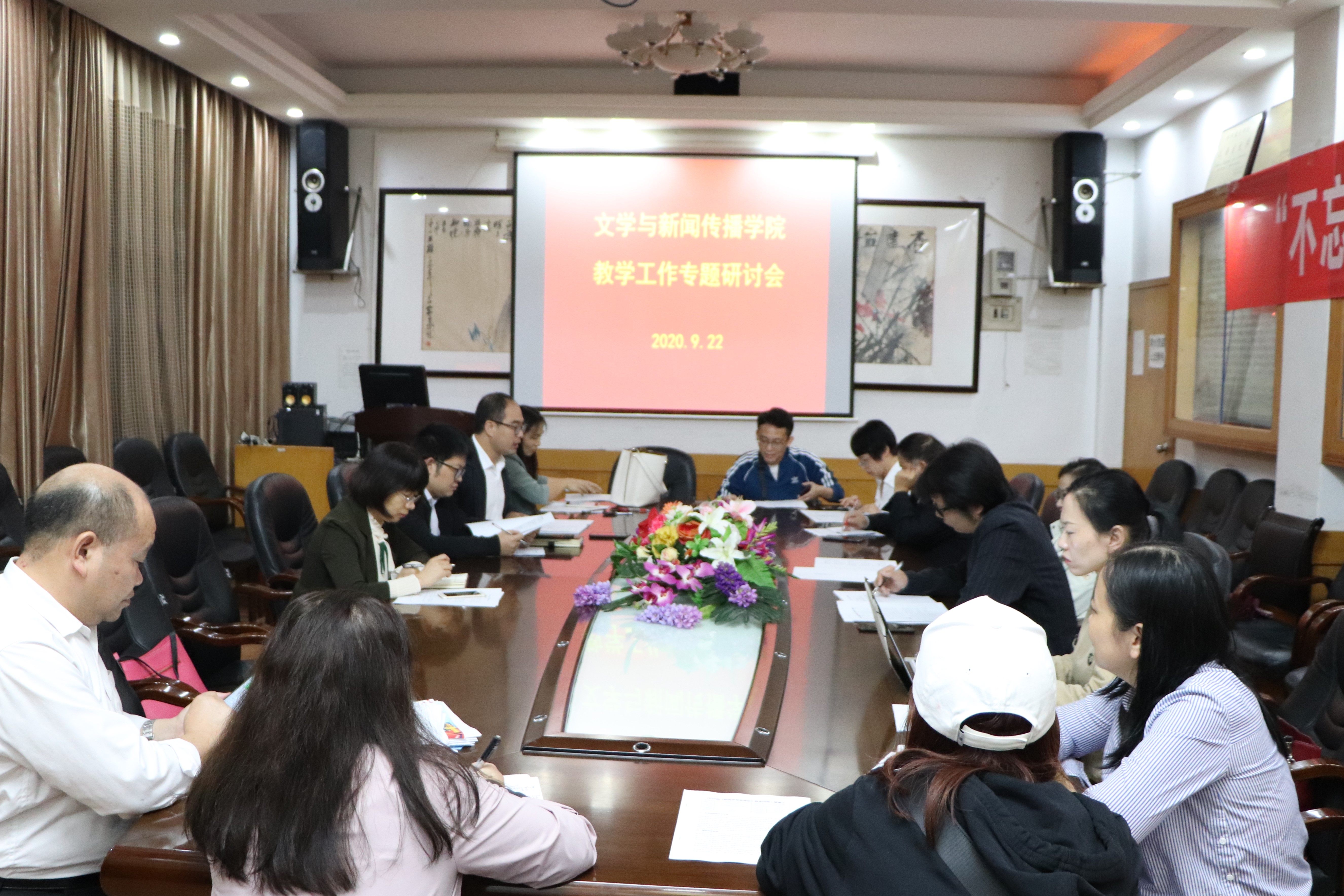 本网讯(通讯员 张意 李冰姿)为夯实学生学科基础,提升学科素养,9月23日晚,我院在影视鉴赏室召开教学工作专题研讨会。院党委副书记段武城、副院长彭广林、各教研室主任及班导代表参加此次会议。会议由彭广林主持。