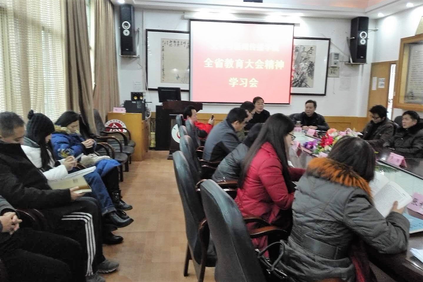 本网讯(特约通讯员 黎阳)2019年1月14日下午,我院召开专题会议,组织全院教师和行政管理人员认真学习湖南省教育大会精神。学院党委书记陆升合主持会议,院长罗惠缙,副院长王焕林、彭广林,党委副书记向军和院长助理、各专业主任、教研室主任、学生辅导员参会。