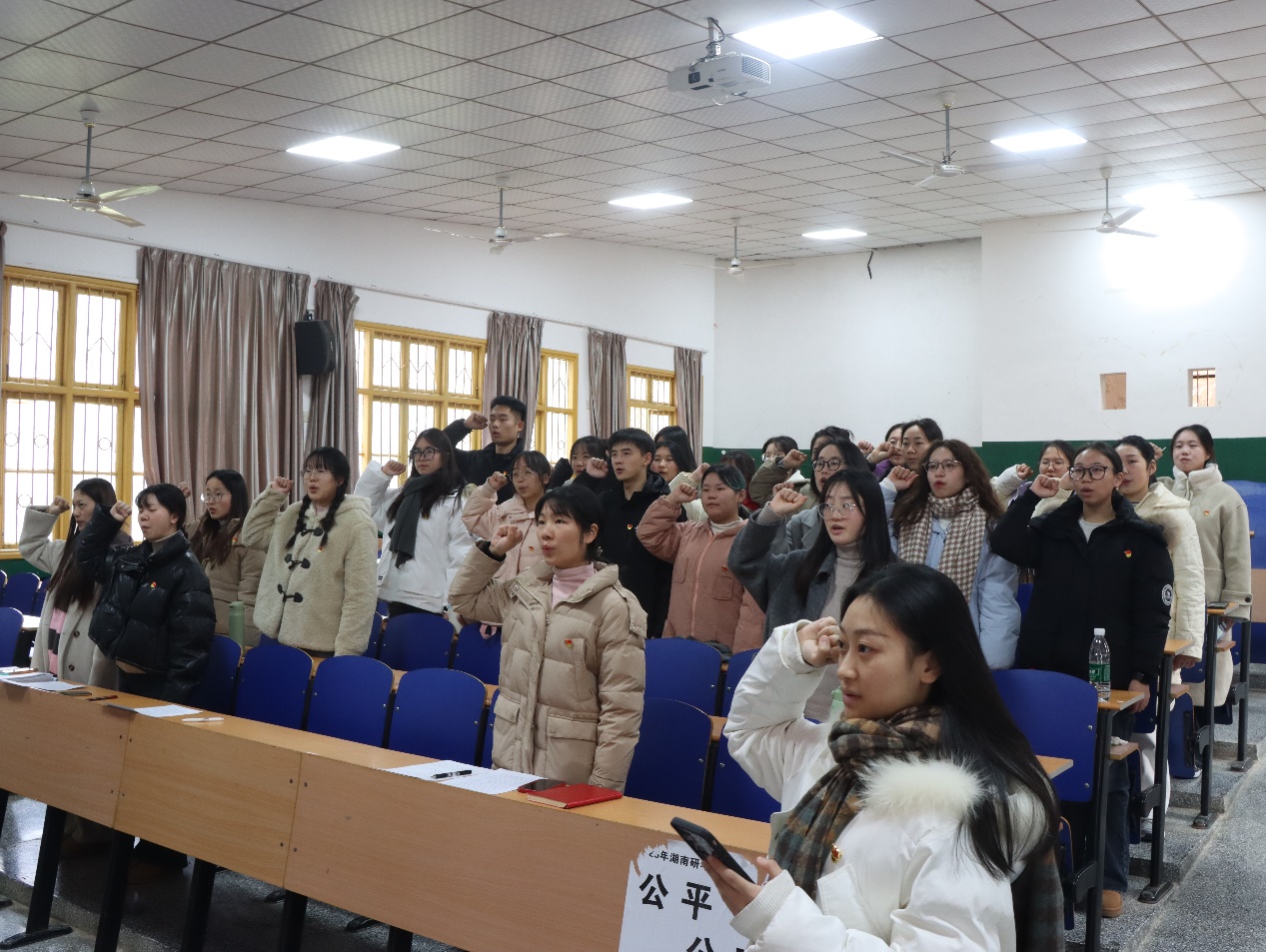 活动在庄严的《国际歌》声中拉开序幕。首先,由主持人王莎鑫宣读了今年下半年经党委审核批准的新党员名单,共计14名新党员加入党组织,支部对他们的加入表示热烈欢迎和诚挚祝贺。随后,在领誓人张鑫雨的带领下,新党员面对党旗郑重宣誓,老党员亦重温入党誓词。党员们神情庄重,誓言铿锵,彰显了对党的忠诚和为共产主义事业奋斗终身的决心。