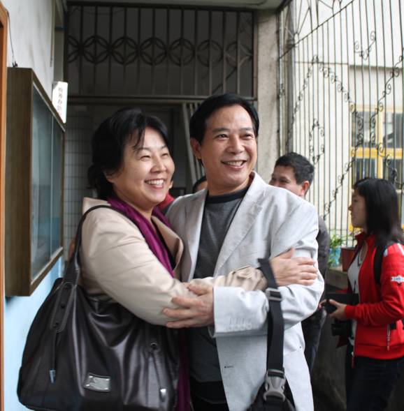 图为同学在场外与当年的班主任亲切交谈(黄煌\摄)