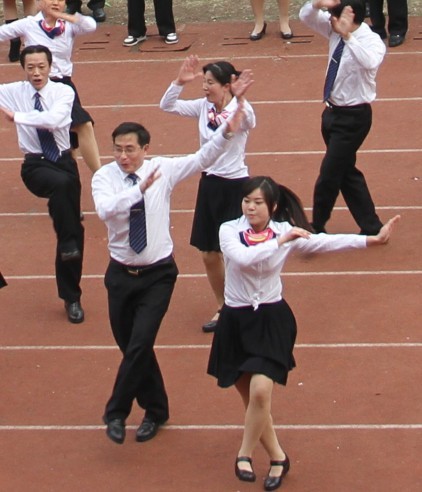 在校的文学院教师都参加了此次排练。持续一个多月的排练,老师们天天参加,以认真、全力以赴的姿态参与此次活动。他们的精神就是:要么就不做,要么就要做出特色,而这也正体现了我院的精神:求真、向上、完美。