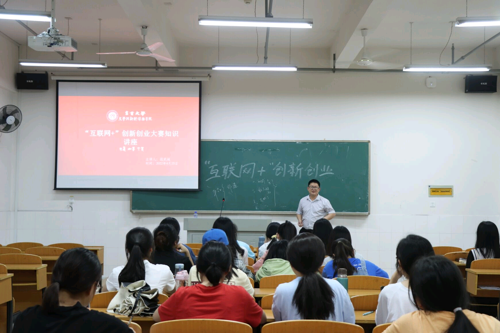 本网讯(通讯员 李霞 张昕垚 易晴) 为了增进我院同学对“互联网+”大学生创新创业大赛的进一步了解,推动同学们创新创业积极性,增强创新创业能力,4月25日晚上七点,我院在大田湾校区2302教室召开了“互联网+”创新创业大赛赛事解读与辅导讲座,学院党委副书记段武城为本次讲座主讲人。