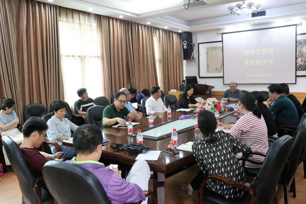 本网讯(通讯员朱嘉昕 饶金玉)6月18日上午,我院在砂子坳校区影视鉴赏室开展主题为“专业建设与学科建设”的研讨讲座。中国人民大学新闻学院教授、广西大学新闻传播学院院长郑保卫受邀参与本次讲座并担任主讲人。院长罗惠缙、副院长彭广林、新闻学专业主任李端生及部分师生参加讲座。此次讲座由罗惠缙主持。