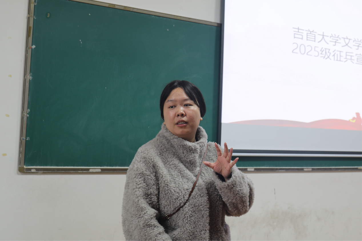 本网讯(通讯员 刘美玲 刘希雅 李清清)12月10日中午,学院于大田湾校区第二教学楼309教室顺利举办征兵宣讲会。本次宣讲会特邀学院武装专干丁玉兰,以及新疆军区部队退伍军人朱安成、武警第二机动总队退伍军人曾湘和北京卫戍区部队退伍军人喻妙泽作为宣讲嘉宾。学院2025级约90名男生参与本次会议。