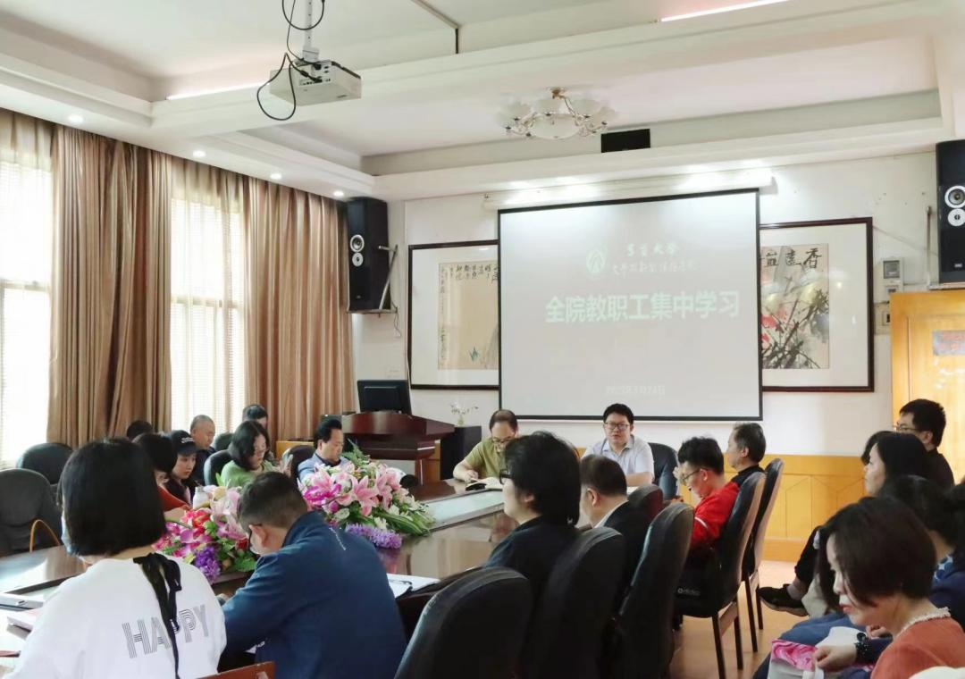 本网讯(通讯员 李霞 张佳宁)为加强师德师风建设,促进学院发展。5月24日下午,我院于沙子坳校区一教影视鉴赏室召开全体教职工大会。副院长彭广林,党委副书记段武城,副院长瞿建慧及我院全体教师出席本次会议,会议由段武城主持。