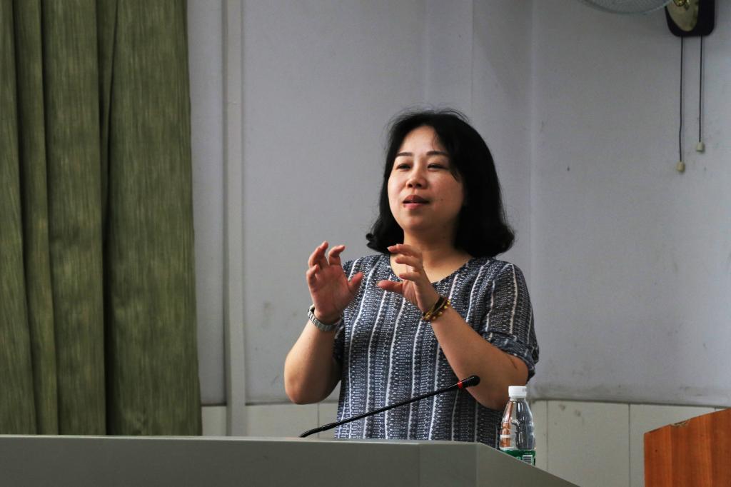 吕定红作总结发言。她对李明老师的到来表示感谢,并表示本次讲座具有较强的指导性,有利于培养我院心理信息员“助人自助”的同理心,提升心理预警敏感意识,推进朋辈之间的沟通理解,推进我院学生心理健康成长。