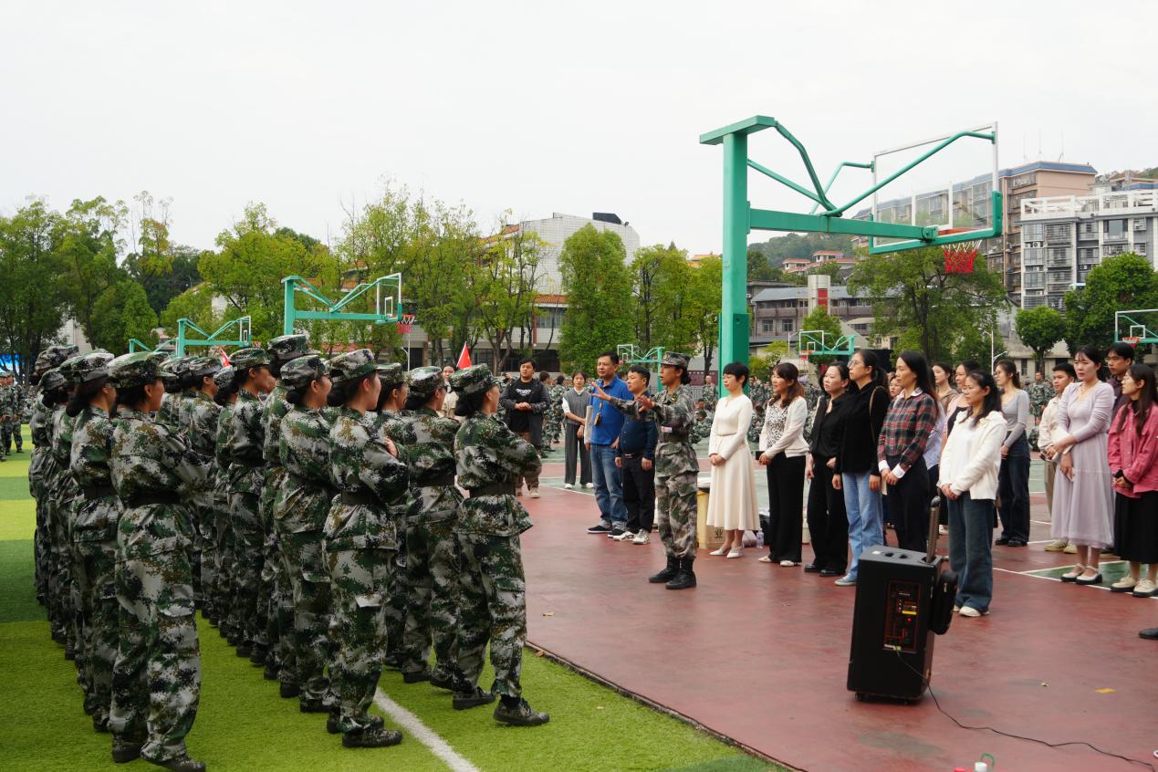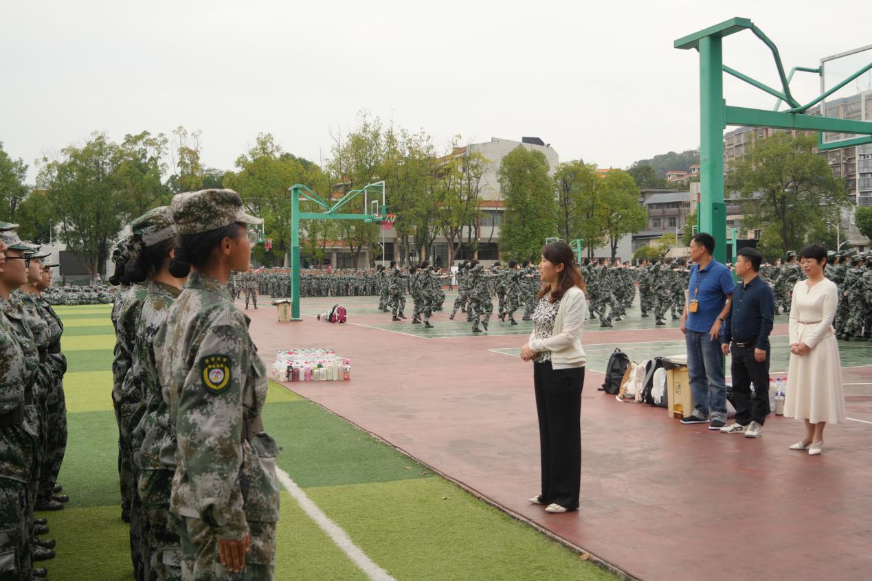 看完英姿飒爽的匕首操排后,罗琼副院长提出,希望新生在军训中锤炼自己的意志,发扬吃苦耐劳的光荣传统,保持良好的精神状态。