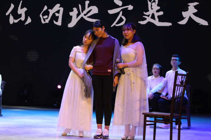 我院选手以“感受母爱”为主题的参赛作品《天之大》结合了舞蹈、情景剧等多种多样的比赛形式。以《登鹳雀楼》、《出塞》、《村居》等古典诗词为时间线索串联起由孩童一路成长为青年后与母亲的感情变化。