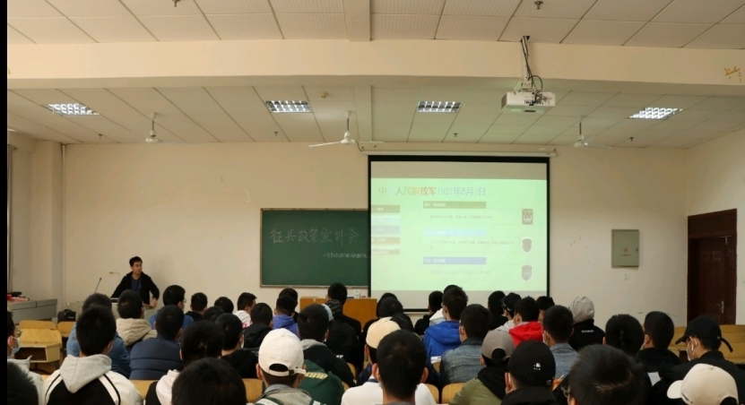 本网讯 (通讯员 刘一丹)12月3日我院在老校举行了征兵政策宣讲会,宣讲目的在于分析国际形势、强化国防教育、鼓励参与义务兵役。宣讲会由学生会主席助理刘华仪主持,戍卫南沙岛礁的海军退伍军人宋鑫棵学长主讲,文学与新闻传播学院21级全体男生参加。