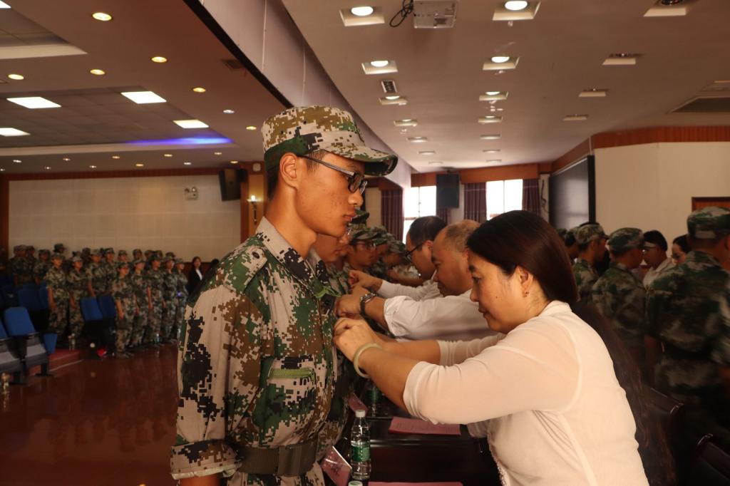 典礼伊始,王焕林向2019级新生介绍了与会领导与老师。随后,全体起立,奏唱国歌。并进行佩戴校徽与受班旗仪式。