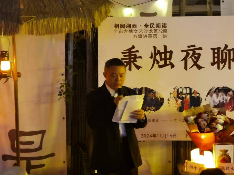 “方塘讲苑”首场活动由湘西州文艺评论家协会主席、yL23411永利集团教授何小平主持,由yL23411永利集团原正校级督导、湖南省旅游学会专家委员会首席专家、我院教授张建永老师担任主讲。活动吸引了来自各界的学术与文学人士,包括湖南财政经济学院原党委书记肖湘愚教授、彭千芮副教授、毛璐璐博士、田祝老师及其学生代表。我院陈文敏教授、刘泰然教授、彭继媛教授、陈雪博士、李兰博士,以及24级全体现当代文学研究生和西湘风文学社部分社员也积极参加。此外,部分湘西作家代表和媒体记者也出席了此次活动。