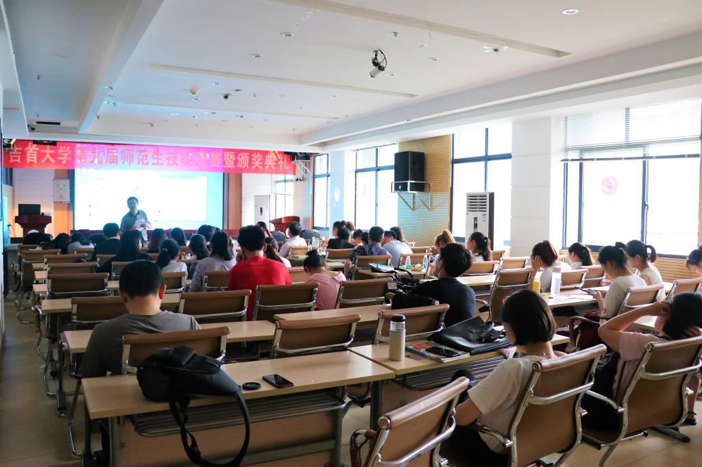 本网讯(通讯员 张意 郑之阳)为引导我校师范生加强专业教学技能训练,促进我校师范生专业素质和基本技能的提高,我校于5月26日在砂子坳校区实验大楼举办第九届师范生技能竞赛总决赛,并于下午举行颁奖典礼。我院参赛选手田元伟在本次比赛中以第一名的成绩获得文科组一等奖。