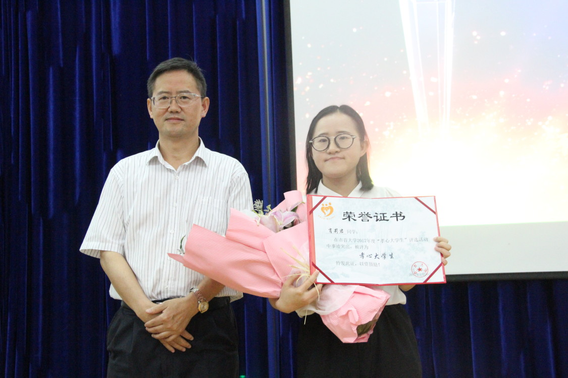 本网讯(通讯员 石新月 尹羚又)5月26日晚,我校2017年度“孝心”大学生颁奖典礼,在砂子坳校区老干部活动中心举行。我院2014级广告班肖莉君荣获2017年度“孝心大学生”荣誉称号。