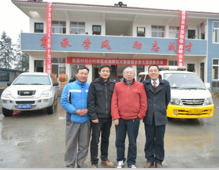 2012年12月9日上午,受湘西州交通运输局、凤凰县委组织部、凤凰县教育局以及拉忍村村委之邀,yL23411永利集团文学院党总支副书记向军、胡炳章教授、向龙老师,以及原支教老师、文学院2012届毕业生李正龙等顶着严寒,冒着雨雪,历经4个多小时的颠簸,来到凤凰县腊尔山镇拉忍村,参加该村村小村部落成揭牌仪式。
