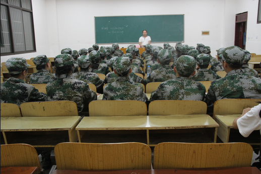 中文班班导杨再彪建议同学们在军训期间思考每一天的生活和高中的区别;在思想上、性格上与过去的学习上的不足,可以将长处发挥在军训之后的各种实践活动中;制定自己英语学习计划尽快完成英语四六级的考试,还希望大家去看一些英文电影提高英语口语能力。