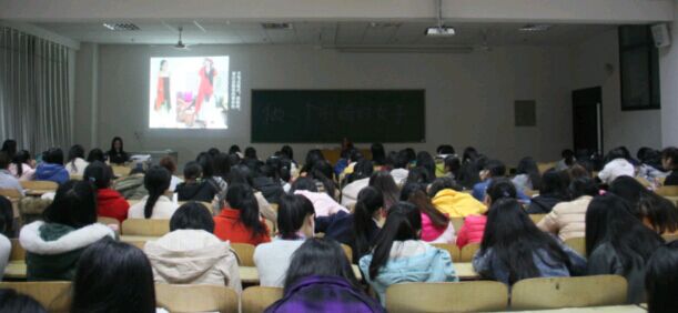 随后,周成华向同学们分享了一些当代优雅女子的着装图片,并向大家推荐了几本有关养生类的优秀书籍。谈及保持美丽的秘诀,她从个人的养生、饮食、运动,服装搭配等几个方面进行详细阐述。