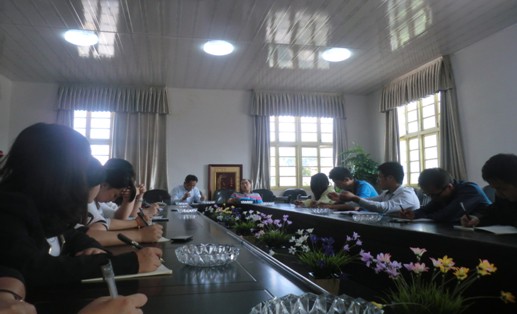 本网讯(杨萍 李谋备) 在我院沅陵一中实习队15人都上过了一个星期的课后,2013年10月21日下午,在政教处二楼会议室,沅陵一中教务处特地为实习队举行了优秀语文教师经验交流会。高三优秀语文老师瞿秀健出席了会议并讲话,实习队的15位成员参加了本次交流会。