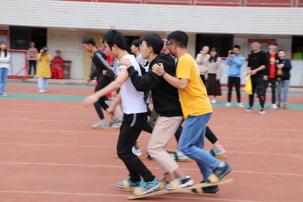 图为 我院选手正在进行男女混合三人板鞋比赛(郑之阳 摄)