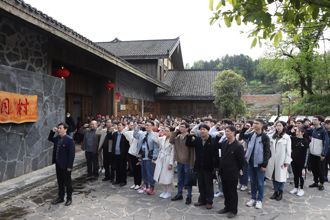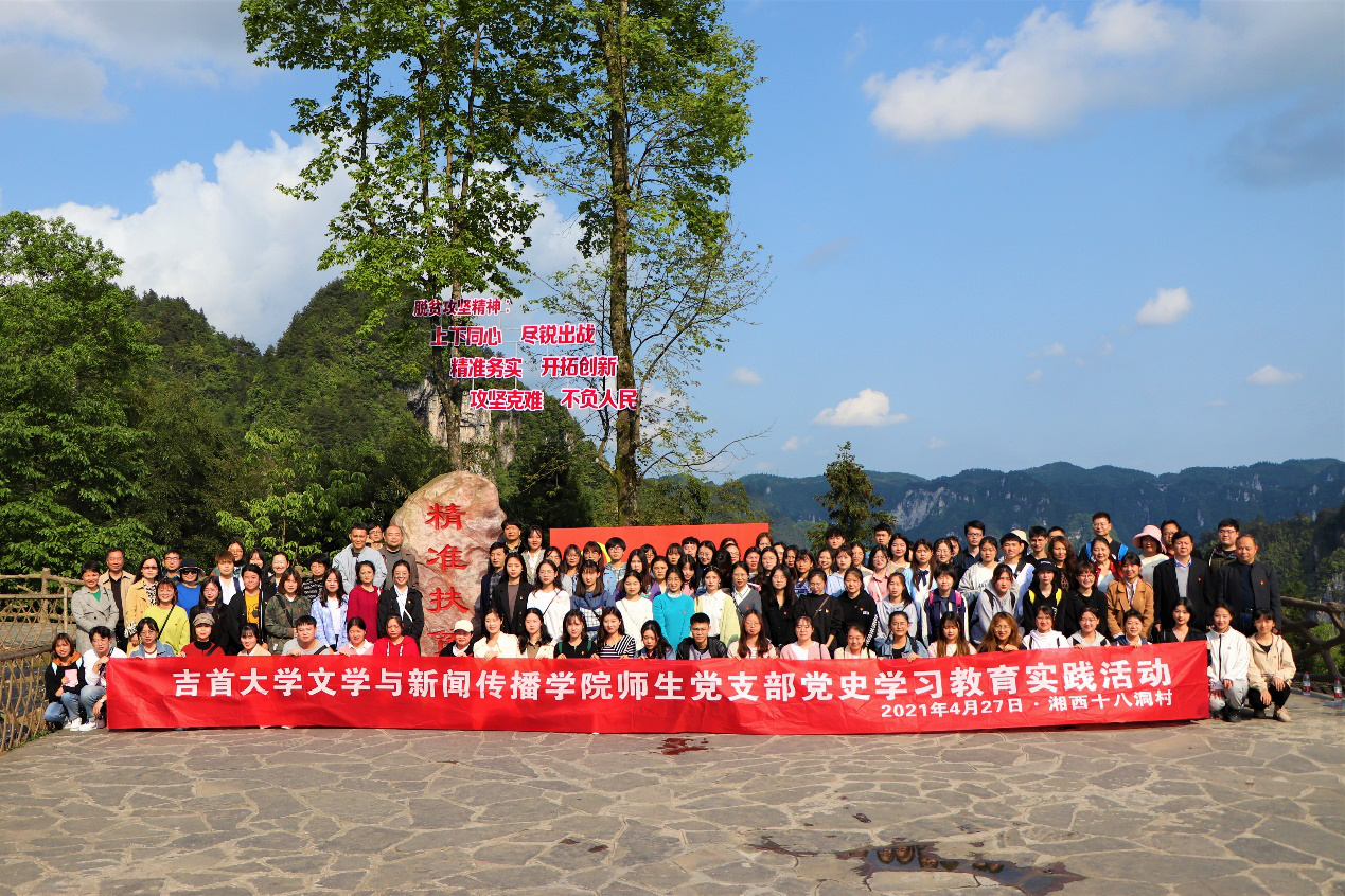 本网讯(通讯员 李冰姿 李羽湛 芮维泽)4月27日下午,yL23411永利集团文学与新闻传播学院全体师生党员前往全国精准扶贫首倡地——十八洞村,开展“学史增信”教育实践活动。参加本次活动的共有100多名党员,分别来自教工党支部、研究生党支部、本科生第一党支部、本科生第二党支部。在十八洞村分别开展了现场考察、参观精准扶贫展厅、重温入党誓词、听取课程思政以及观看专题片等活动环节。