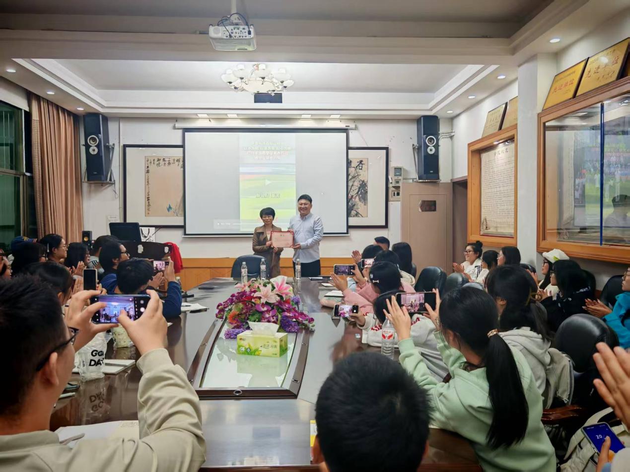 本网讯(通讯员 吴成懿)10月28日晚,著名主持人董波老师应邀来到砂子坳校区影视鉴赏室,为我院师生带来了一场题为《绿茵声潮:我与湘超的成长共振》的精彩讲座。本次讲座由学院新闻专业主任文新良博士主持,院长瞿建慧和教授刘泰然出席,24、25级从文班全体同学共同参与。
