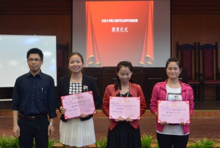 本次大赛共吸引了外国语学院、师范学院以及我院在内的11个学院的师范专业学生参加,各院系组织初赛,最终共有文科组17名选手、理科组9名选手入围决赛。教学督导汤人翰老师、丁畅松、唐世洪老师,在职教师李端生老师等六人担当评委,经过“三字”(粉笔字、毛笔字、钢笔字)现场比赛、说课、授课等比赛环节,最终,师范学院的沈进、曹海艳,外国语学院的梁雪辉3人技压群雄荣获一等奖。我院的龚玲、徐丹荣获三等奖,耿涛夺得优胜奖,闫玉娇获得优秀教案奖。我院获得优秀组织奖。