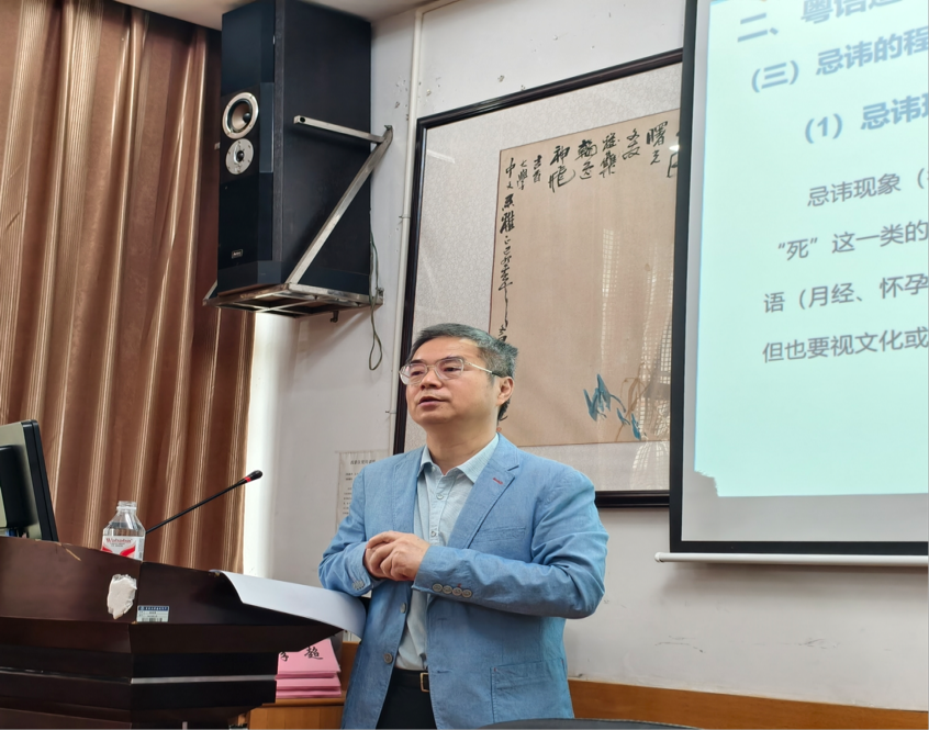 本网讯(通讯员:周心怡)4月10日下午,暨南大学语言资源保护暨协同研创中心主任甘于恩教授在砂子坳校区影视鉴赏室开展一场题为《广东粤语“猪肝”的地理语言学分析与粤语避讳文化》的学术讲座。本次讲座由学院院长瞿建慧教授主持,语言学教研室教师及研一、研二学生参加。