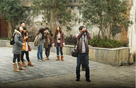 在边城,张老师将同学们分成小组分别在“三不管岛”、“翠翠岛”、“拉拉渡口”、“复兴银行”等地进行了采风拍摄。