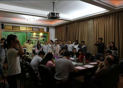 图为 新进成员宣誓(夏慧琳 摄) 在主持人的带领下,新入成员们进行了庄严宣誓,表达了日后努力工作的决心。紧接着,通讯员代表刘会敏,分享了自己工作的所感所想。 李端生教授总结发言。他简述了学通社本年的工作情况,现场传授新闻知识,并给出了建议。他提出“三现新闻”一词,即发现、表现和体现,告诉社员们要提升自己的新闻敏感度,树立观察与思考的品格,要在生活中寻找新闻,要勤学好问,动手实干。他还告诫社员道,要努力学习,坚持写作,在困难中磨砺自己,以人名校告诫大家,应当努力完善自己,争取做一名优秀的记者。 自由问答环节,老师们就“如何看待标题党”等问题作出了详细的回答。在场成员认真聆听。 整个仪式过程中,新老成员们积极交流工作经验,现场气氛十分活跃。 附: 通讯员转学生记者名单: 李艾玲、刘会敏、夏慧琳、陈慧宁、粟雯、钟佳丽、陈永行、唐金林、邓霜晴、王振宇、张欣、李飞云 新一届通讯员名单: 罗倩、科科、寻颖、许慧方、曾静、杜雨、刘欣然、陈靖、杜菁菁、李心怡、黄帅帅、谭雨蒙、李雨维、郑慕华、邓丽倩、夏润泽、刘滔、黄小云 学生编辑:李艾玲 刘会敏