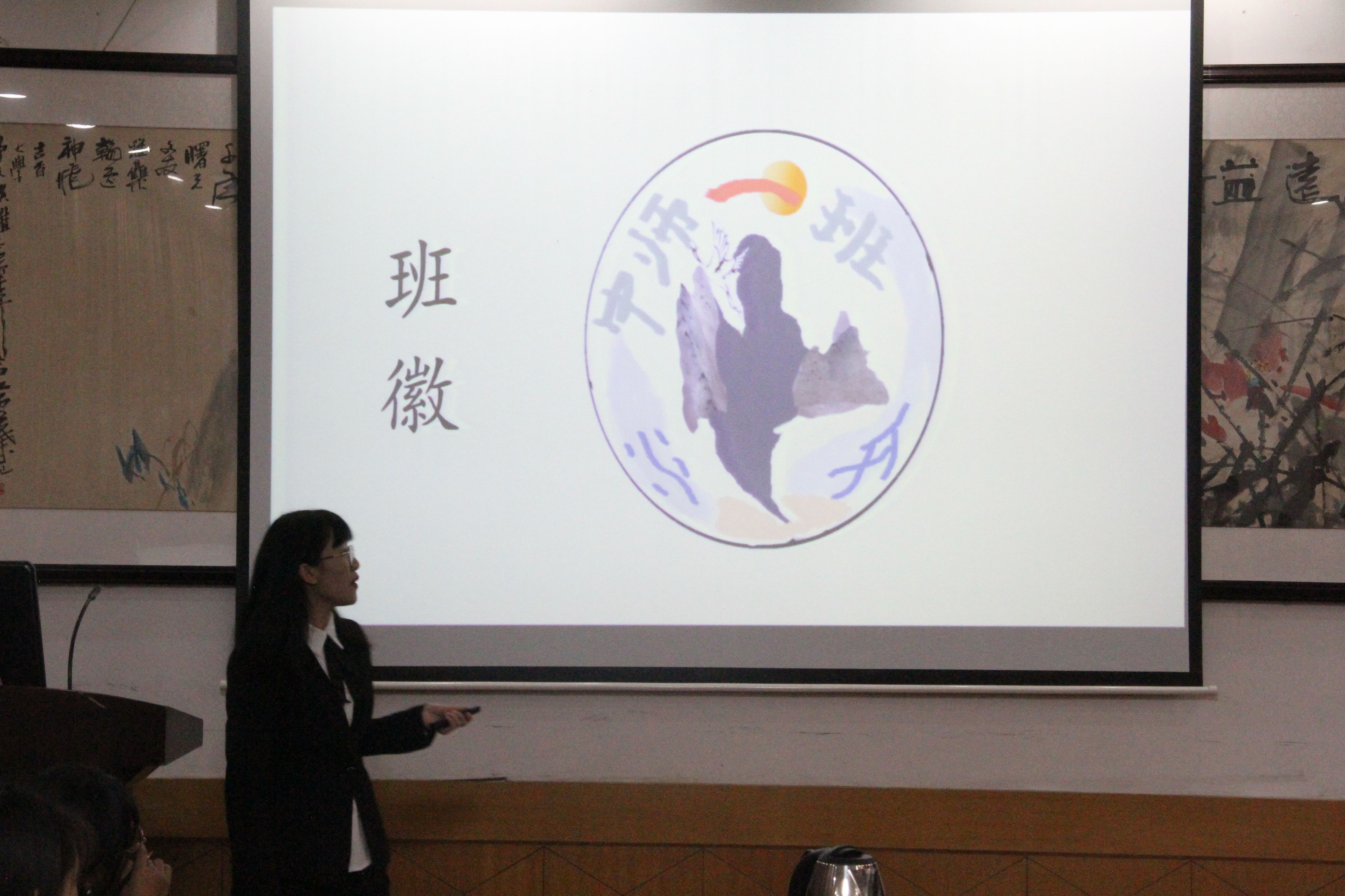 图为 2018中师一班正在讲解班徽(通讯员 罗极摄)