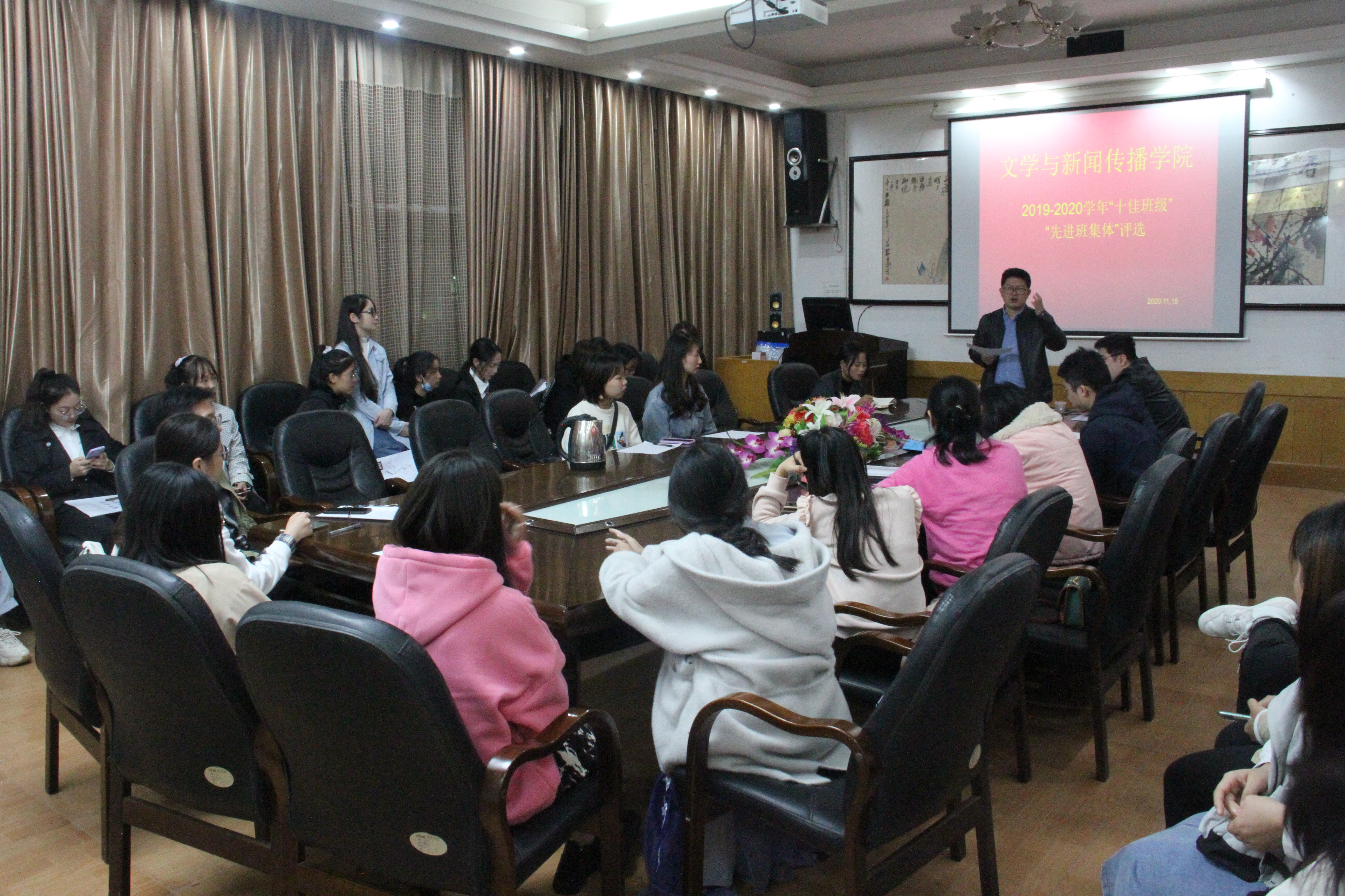 本网讯(通讯员 邱馨瑶 郑仁喆鋆)11月15日晚,在首轮评选出7个参赛班集体后,我院在影视鉴赏室召开了2019—2020学年“先进班集体”第二轮评选会议。院党委副书记段武城、学工办主任刘畅、辅导员吕定红、刘建新以及杜靖担任评委,各参赛班级学生代表参加评选。此次评选由姜浠主持。