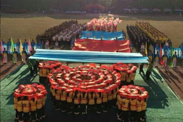方阵队变换的队形,分别是编号队形,鼓,五角星,剑刺花,凤凰,队形样式多变,队员配合默契。