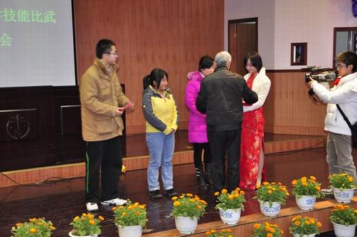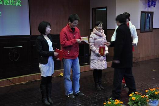 本网讯(学通社记者王绵 曹楠) 12月16日下午,我校首届师范生教学技能比武大赛暨颁奖仪式在砂子坳校区总理楼模拟法庭举行。我院2006级中师一班学生向晓芳拔得头筹与2007级中师二班印唱喜得大赛一等奖,印唱还夺得了“最佳教师风采奖”、“最佳多媒体课件奖”单项奖,我院获得“优秀组织奖”。
